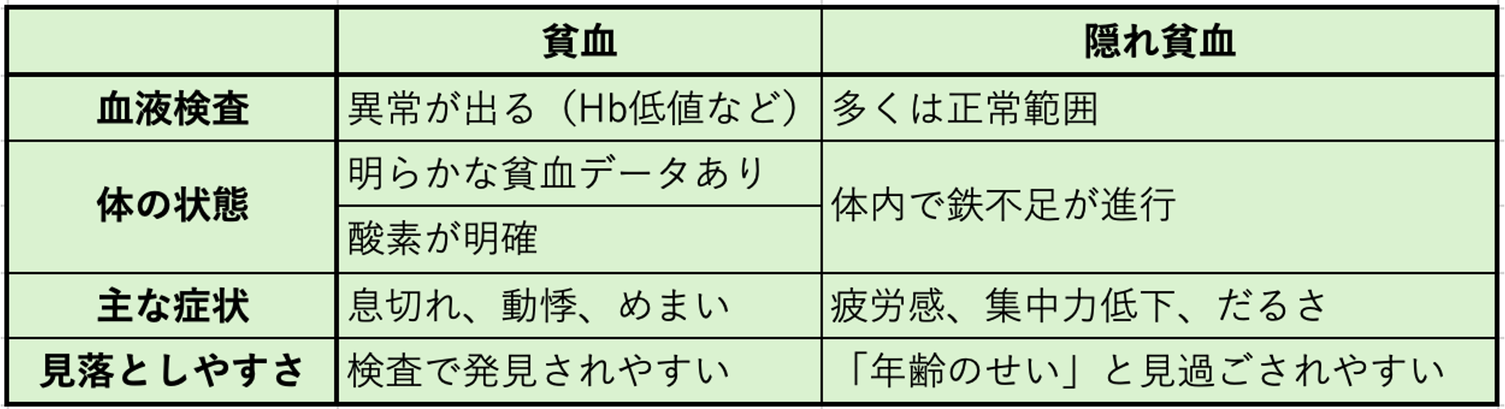 特に隠れ貧血は「ただの疲れ」「年齢のせい」と見過ごされがちです。