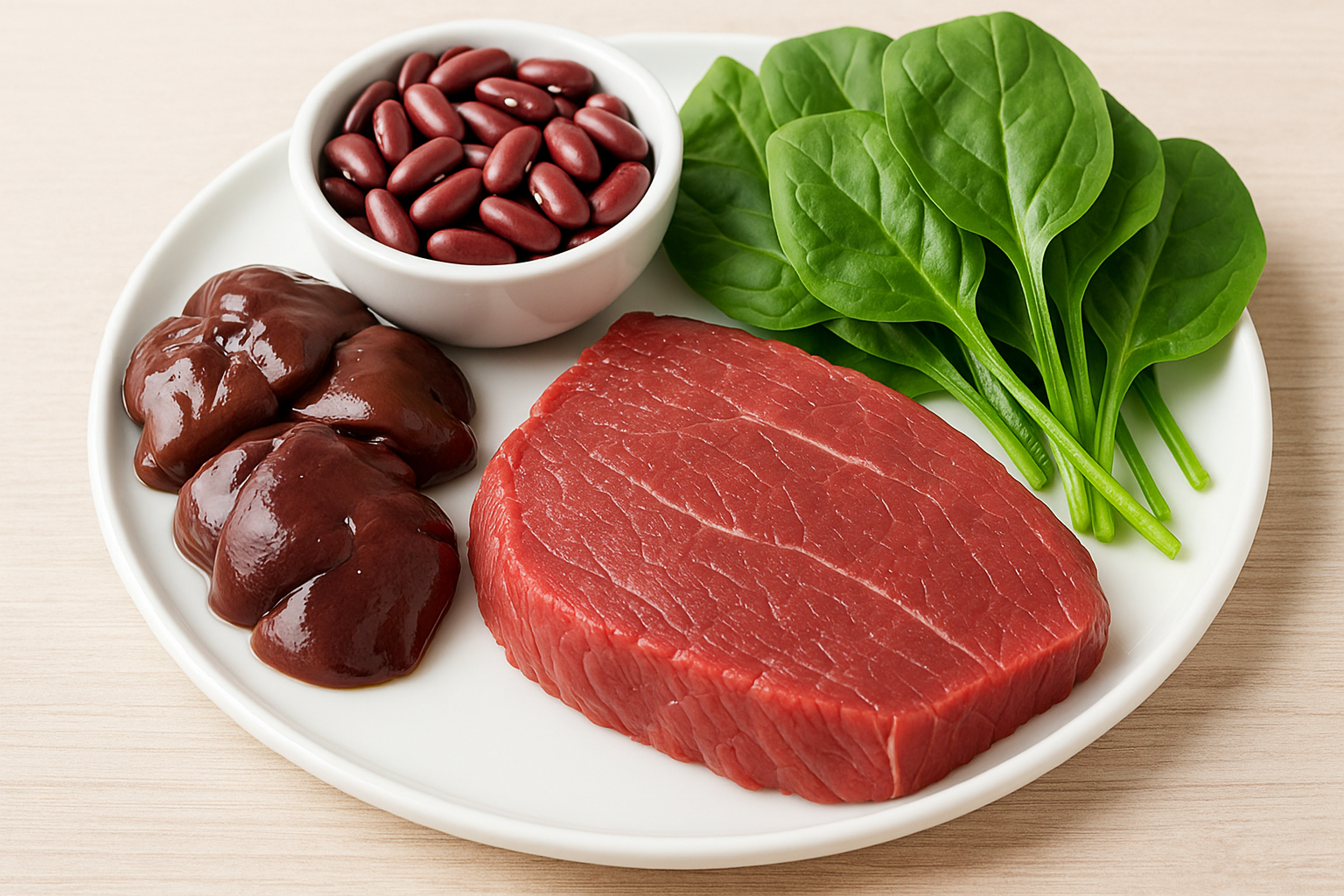 - ・鉄分を含む食材(赤身肉・レバー・あさり・ほうれん草など)を積極的に摂る