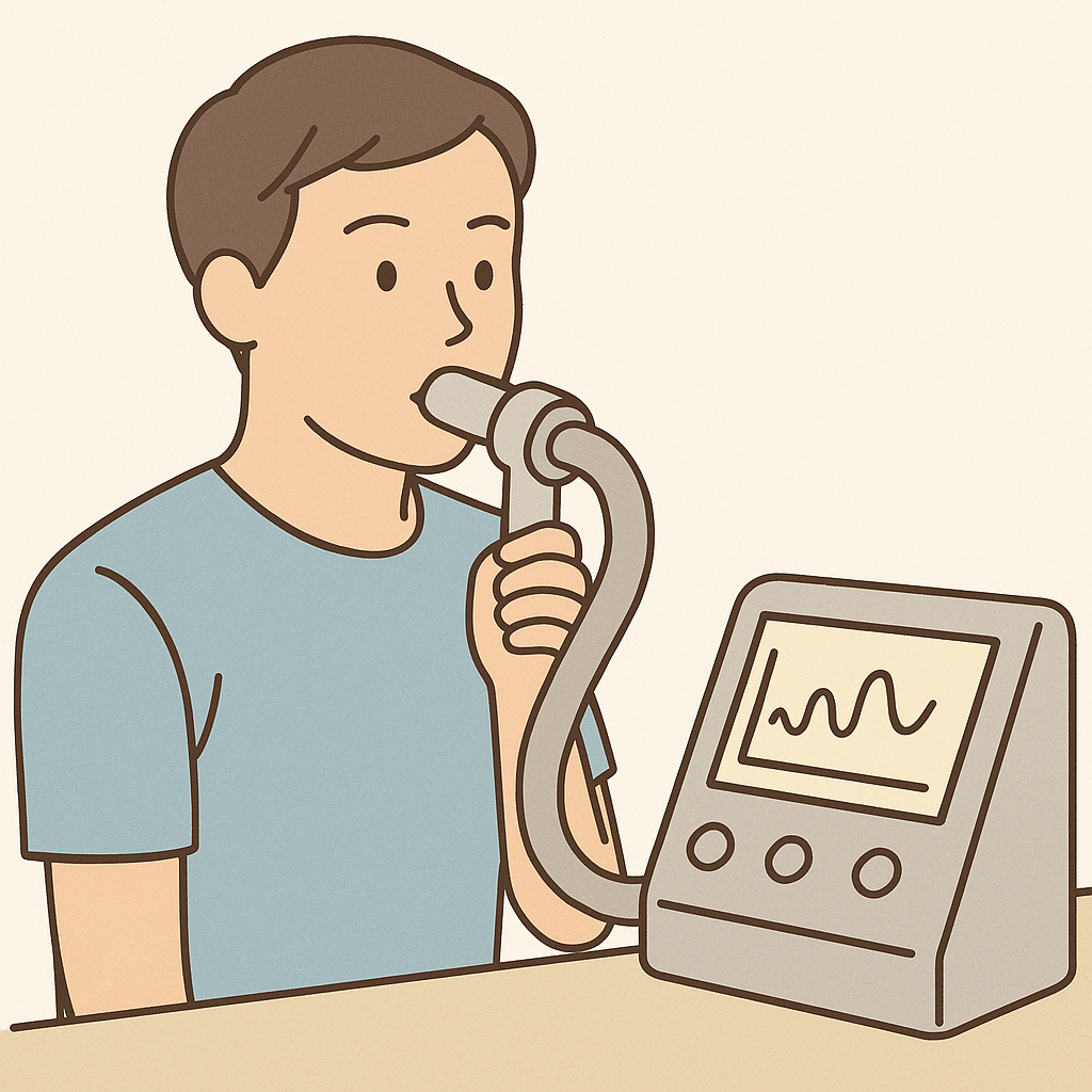 息を大きく吸ったり吐いたりする検査で、