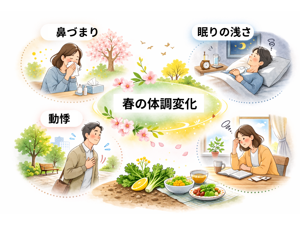 中医学では、人の体も同じように、春はエネルギーが上に向かって動く季節と考えます。冬のあいだ、内にこもっていた力が、外へ広がろうとします。本来は自然な変化ですが、体の土台が整っていないと、その動きに振り回され、不調としてあらわれることがあります。